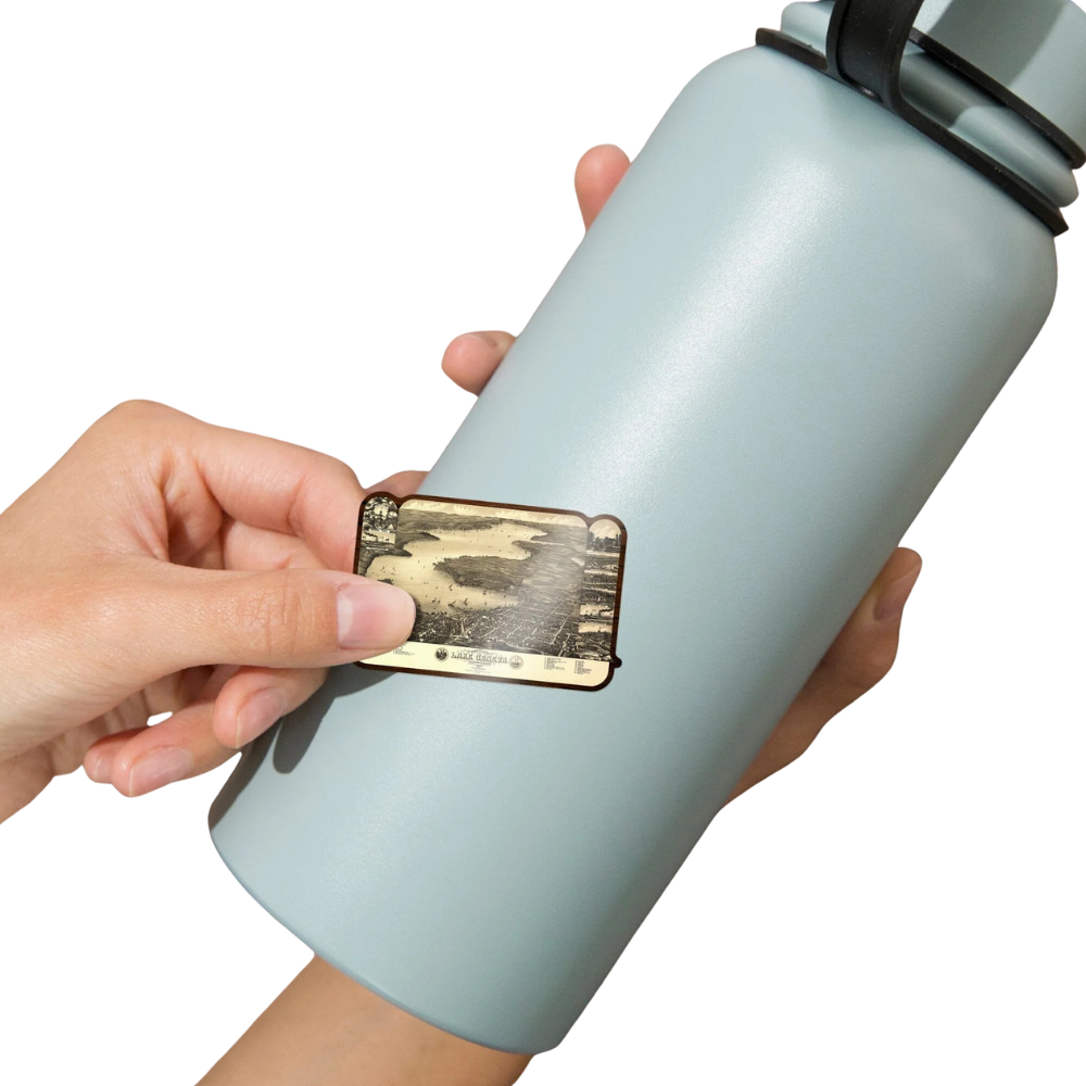 This vibrant vinyl decal features a panoramic map of Lake Geneva, Wisconsin from 1882, adding a vintage touch to your belongings. Waterproof and UV resistant, it sticks best to clean, flat surfaces like water bottles, laptops, or cars, making your gear uniquely charming rain or shine. Printed in the USA with eco-friendly inks, this decal is a playful nod to history wherever you choose to display it.